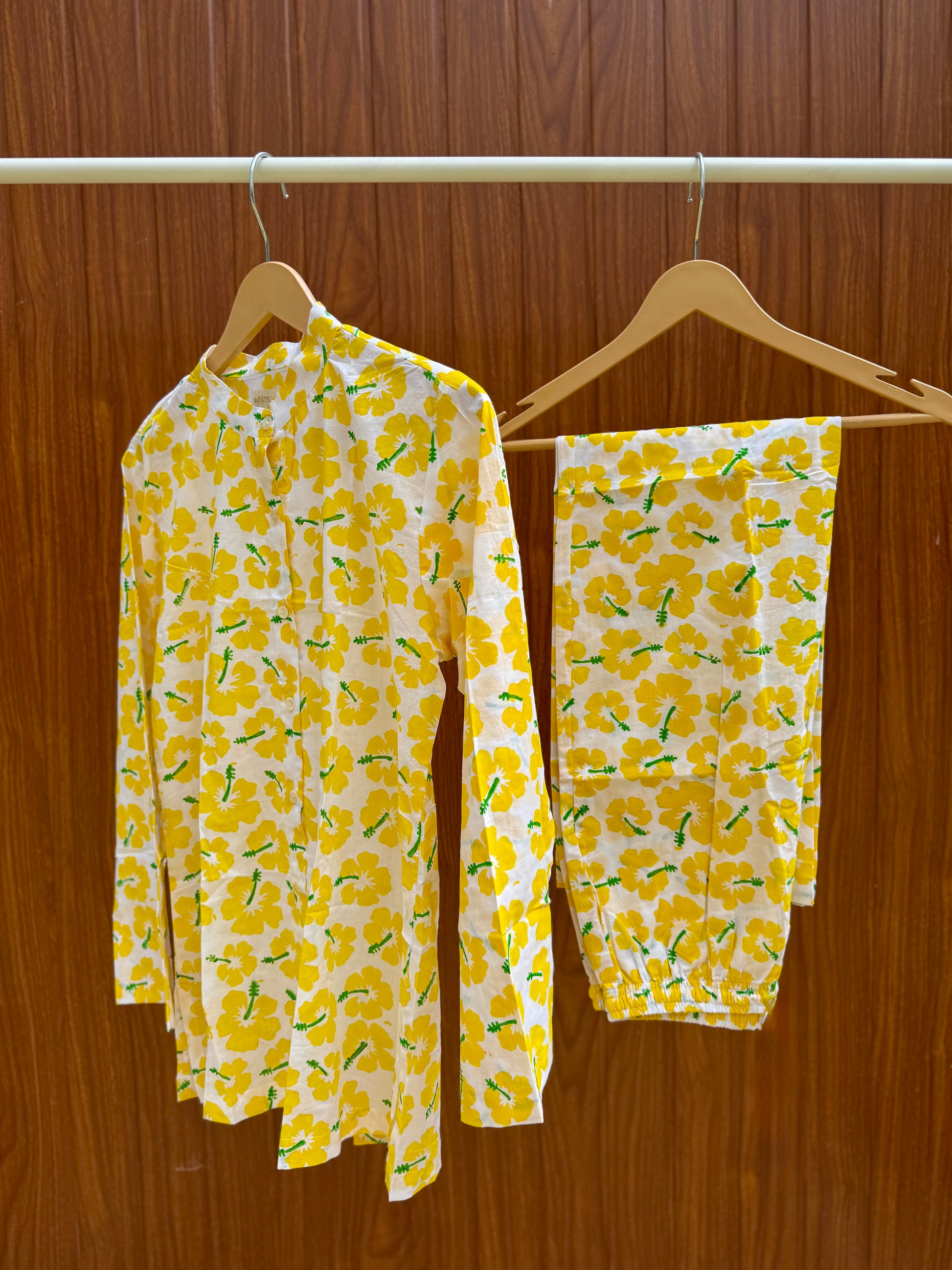 With bright yellow florals and fresh green detailing. Light, breathable, and effortlessly chic — it’s made for slow mornings, tropical escapes, and sunlit strolls.
